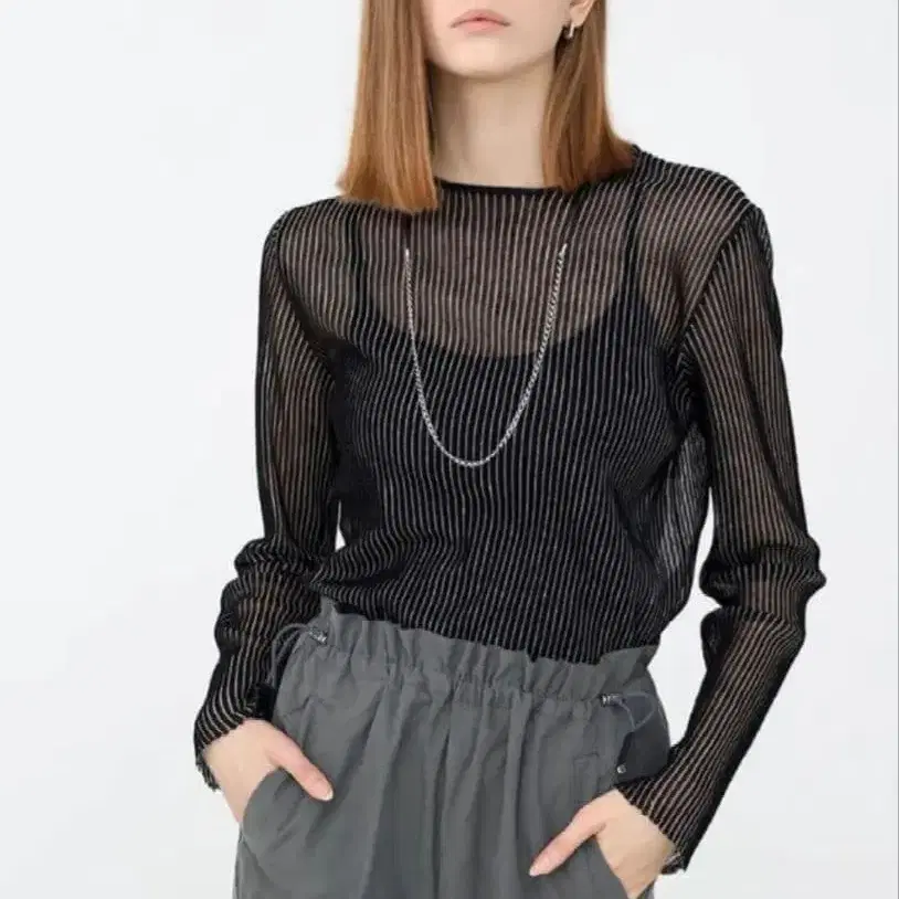 완판템 MIESROHE 미에스로에 시어 스트라이프 니트 가디건