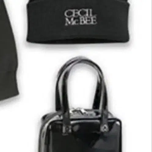 CECIL McBEE 블랙 파우치 자수 니트 모자 세트