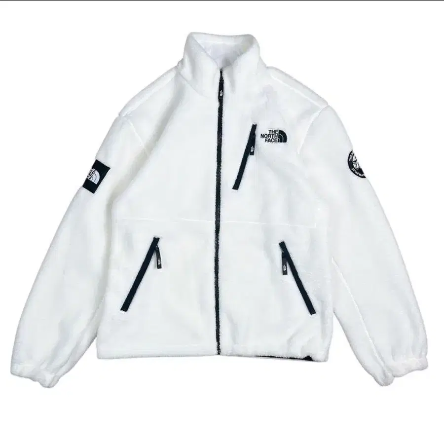 화이트 플리스 자켓, 풀 집업 디자인으로 쾌적한 착용감.