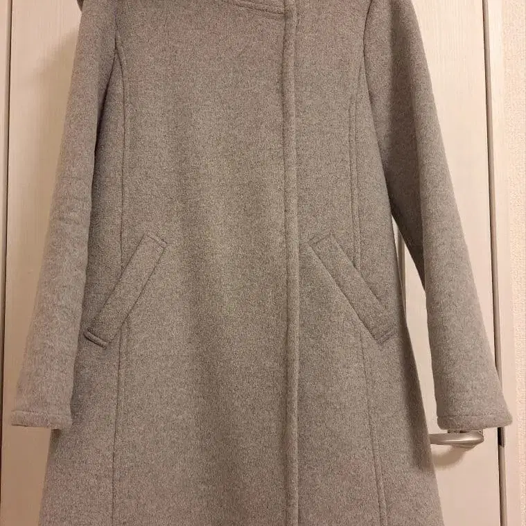베이지 더플 코트 후드 부착