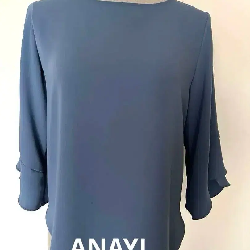 ANAYI. 블루 플레어 슬리브 7부 소매 블라우스