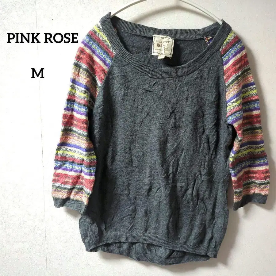 1점물 PINK ROSE 스웨터 M 그레이 멀티 컬러 5부 소매