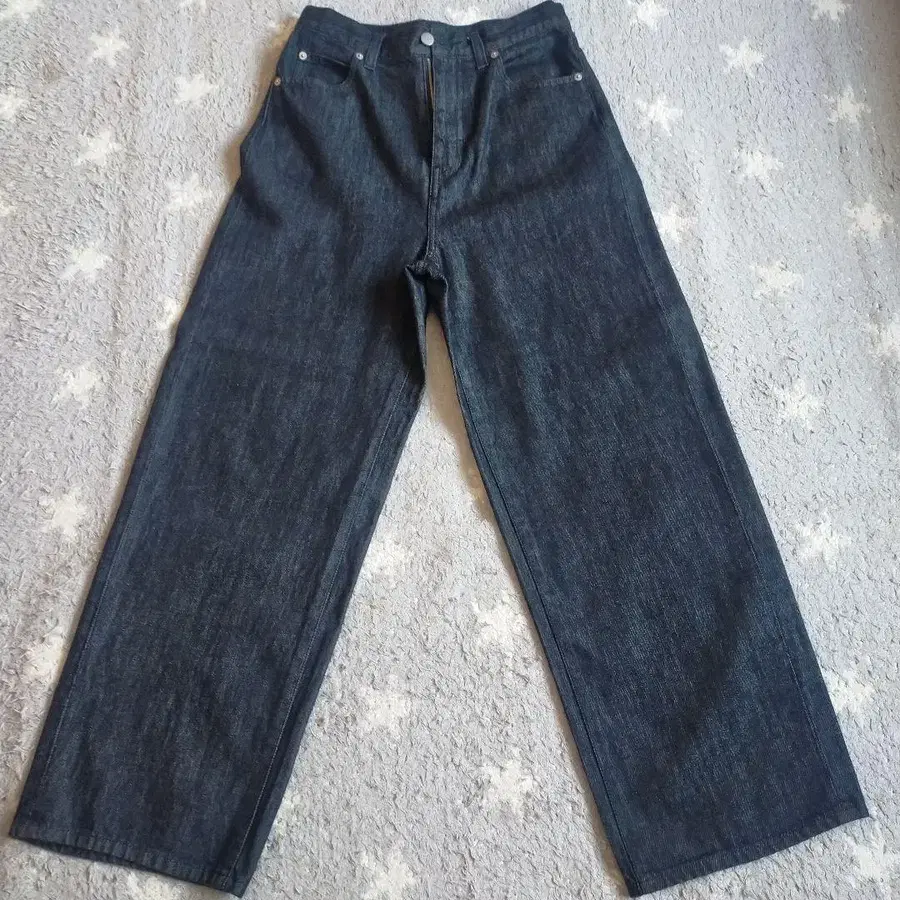 G2 ZN20 새상품급 무인양품 코튼 와이드 블랙 데님 팬츠 W31