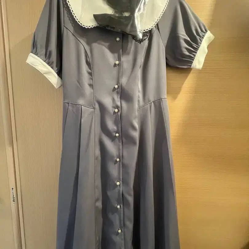 엑시즈팜 포에틱 그레이 반팔 원피스 버튼 포함