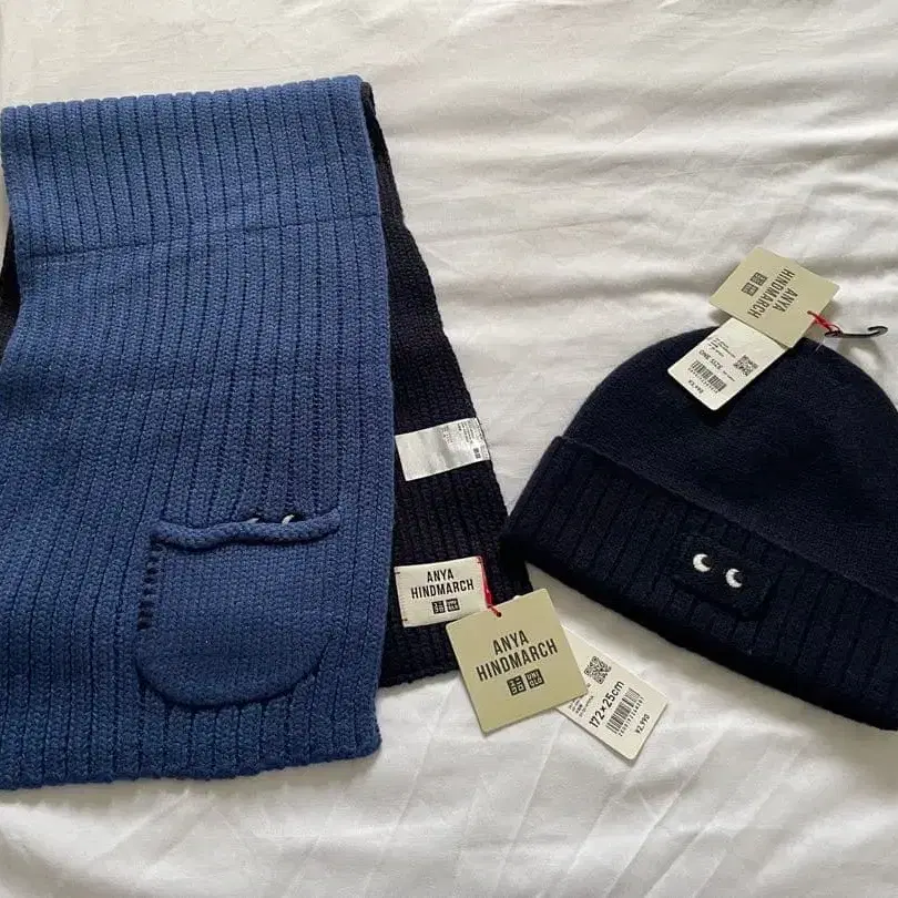 UNIQLO x ANYA HINDMARCH 아이템: 머플러, 니트 모자 (별도 판매 OK) 색상: 네이비 상태: 새상품 소재: 머플러 (울) 니트 모자 (캐시미어)