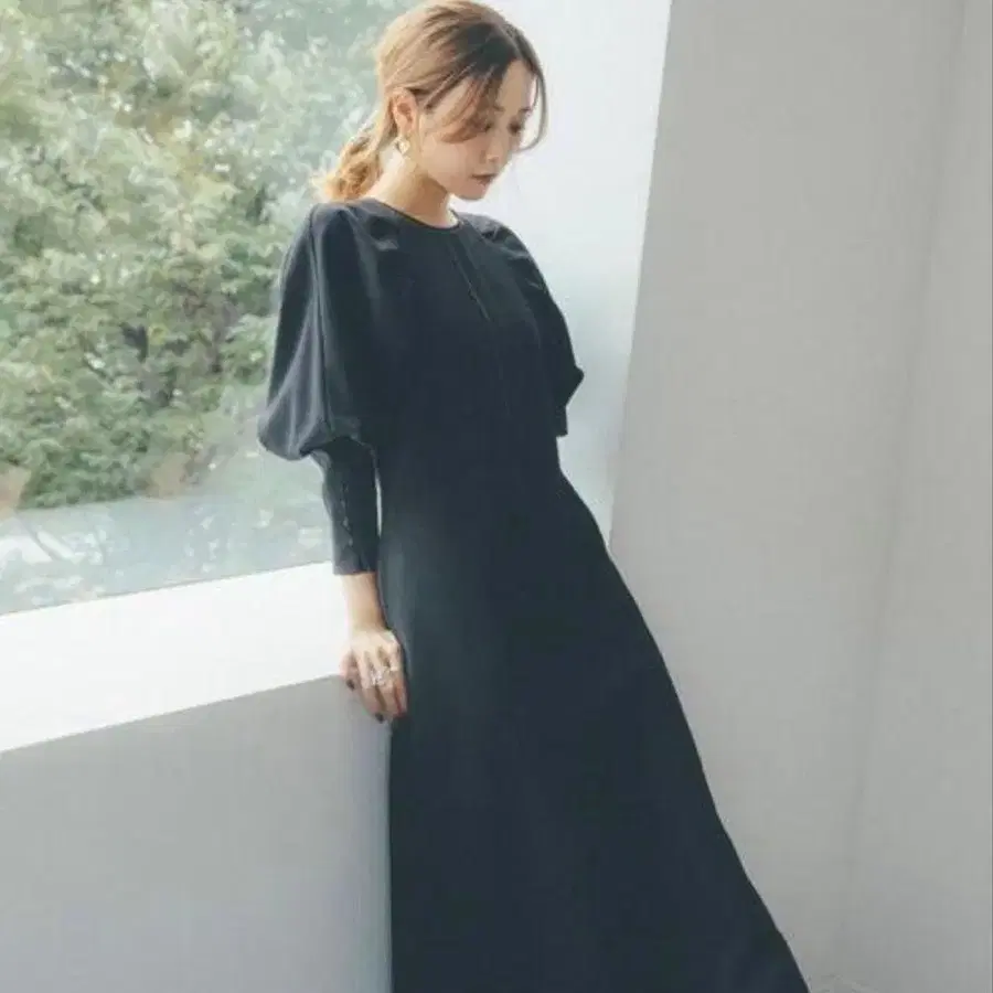 EMMEL REFINES 턱 퍼프 슬리브 롱 원피스
