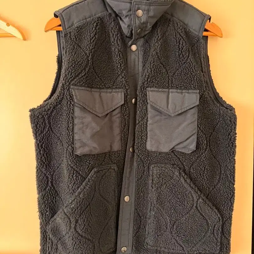 다크 그레이 색상의 플리스 소재에 퀼팅 디자인이 들어간 슬리브리스 베스트입니다. 리버서블 제품입니다. 앞면에 2개의 플랩 포켓이 있습니다. 사이즈감은 남성용 M~L 정도입니다. - 색상: 다크 그레이 - 소재: 플리스/나일론 - 포켓: 앞면에 2개의 플랩 포켓 - 디자인: 퀼팅 패턴 - 스타일: 슬리브리스 베스트, 리버서블 방문해 주셔서 감사합니다. 가격 인하를 원하시는 분은 금액을 제시해 주세요.
