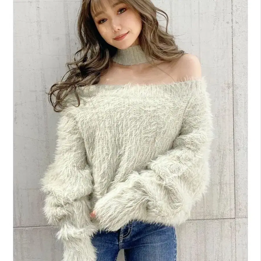 GYDA 2WAY 샤기 초커 니트 상의