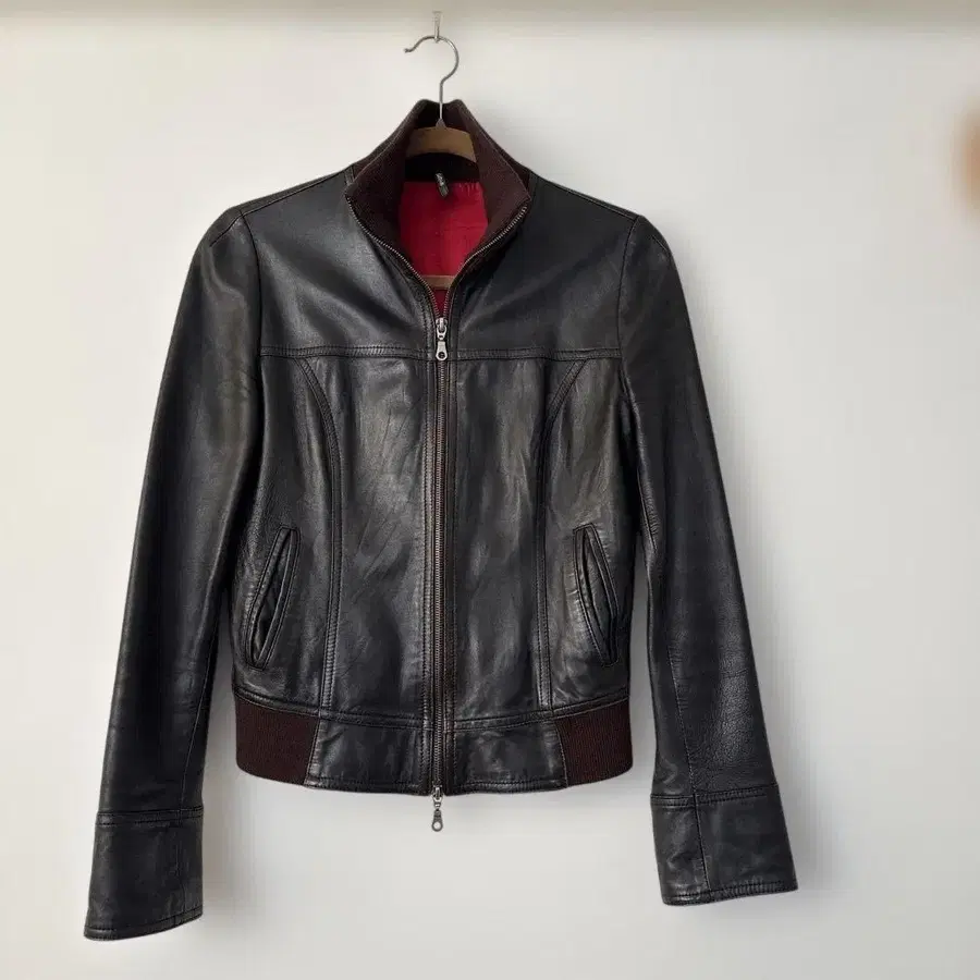 가죽 블루종 이탈리아제 여성용 사이즈 - M 어깨 너비 39 가슴 너비 42 기장 52 소매 길이 63 솔기 부분에 약간의 색빠짐 있음