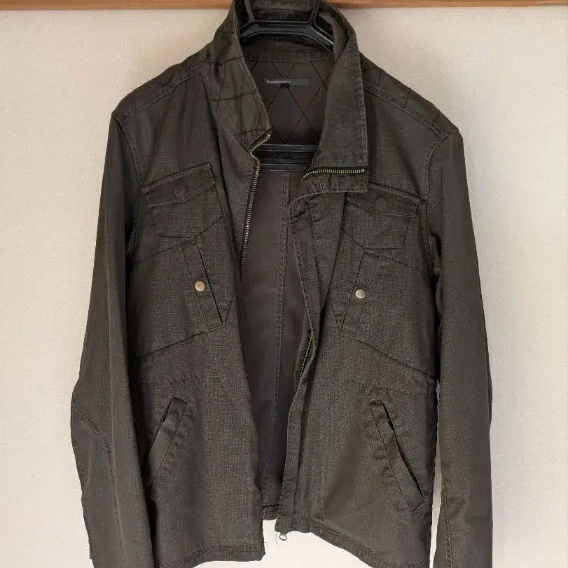 hanakazari 남성용 자켓 지퍼와 버튼 포켓이 달린 캐주얼한 자켓. - 색상: 블랙에 가까운 그레이 - 디자인: 지퍼, 버튼 포켓 - 백 디자인: 퀼팅 디자인 - 스타일: 캐주얼 자켓 방문해 주셔서 감사합니다.