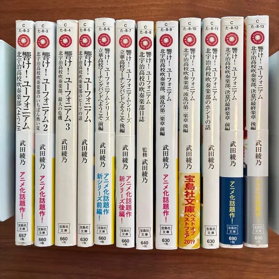 [ 울려라! 유포니움 ] 시리즈 12권 세트입니다. 저자는 타케다 아야노. 중고로 구매한 것과 새 상품으로 구매한 것이 섞여 있습니다. 1. 키타우지 고등학교 취주악부로 오세요 2. 키타우지 고등학교 취주악부의 가장 뜨거운 여름 3. 키타우지 고등학교 취주악부, 최대의 위기 4. 키타우지 고등학교 취주악부의 비밀 이야기 5. 릿카 고등학교 마칭 밴드로 오세요 전편 6. 릿카 고등학교 마칭 밴드로 오세요 후편 7. 키타우지 고등학교 취주악부 일지 8. 키타우지 고등학교 취주악부, 파란의 제2악장 전편 9. 키타우지 고등학교 취주악부, 파란의 제2악장 후편 10. 키타우지 고등학교 취주악부의 진짜 이야기 11. 키타우지 고등학교 취주악부, 결의의 마지막 악장 전편 12. 키타우지 고등학교 취주악부, 결의의 마지막 악장 후편 최신 2권(떠나가는 너의 등을 바라본다, 키타우지 고등학교 취주악부 모두의 이야기)은 포함되지 않지만, 키타우지 고등학교 취주악부의 스토리로서는 완결되어 있습니다.
