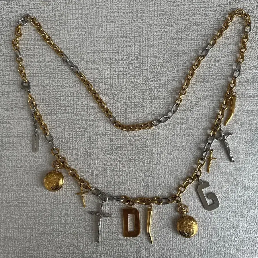 골드와 실버의 유니크한 디자인 목걸이, 길이 조절 가능. - 디자인: 골드와 실버 체인에 알파벳과 십자가 참 - 잠금 장치: 랍스터 클래스프 - 참: 하트 모티브와 십자가 디자인 - 스타일: 캐주얼하고 유니크한 디자인 - 길이: 길이 조절 가능한 체인 방문해 주셔서 감사합니다.