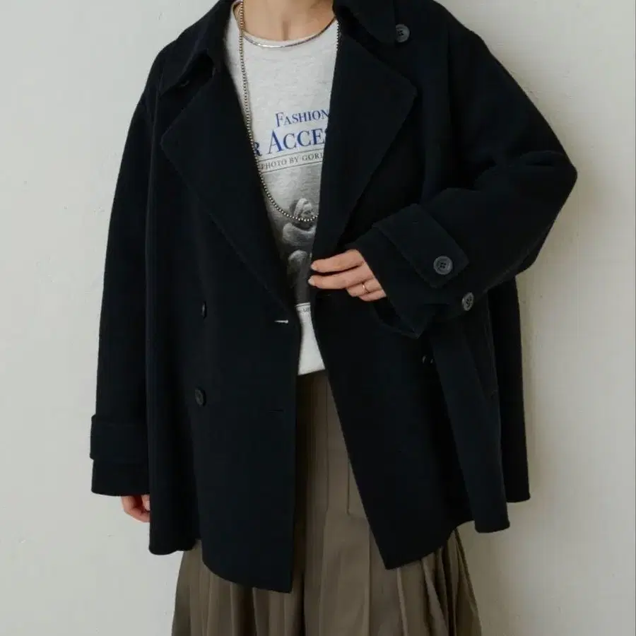 sunaokuwanara 더블 브레스트 피 코트 네이비 블랙