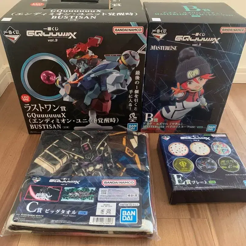 제일복권 기동전사 Gundam 건담 GQuuuuuuX 지크 액스 vol.3 B상 아마테 유즈리하 (바닥) C상 빅 타월 E상 플레이트 라스트 원상 GQuuuuuuX (엔디미온 유닛 각성 시) BUSTISAN 모두 미개봉 상품입니다. 랜덤으로 들어있는 상품은 미개봉이므로 내용물은 알 수 없습니다. 낱개 판매는 불가합니다. 잘 부탁드립니다. 작품명 - 기동전사 건담 시리즈