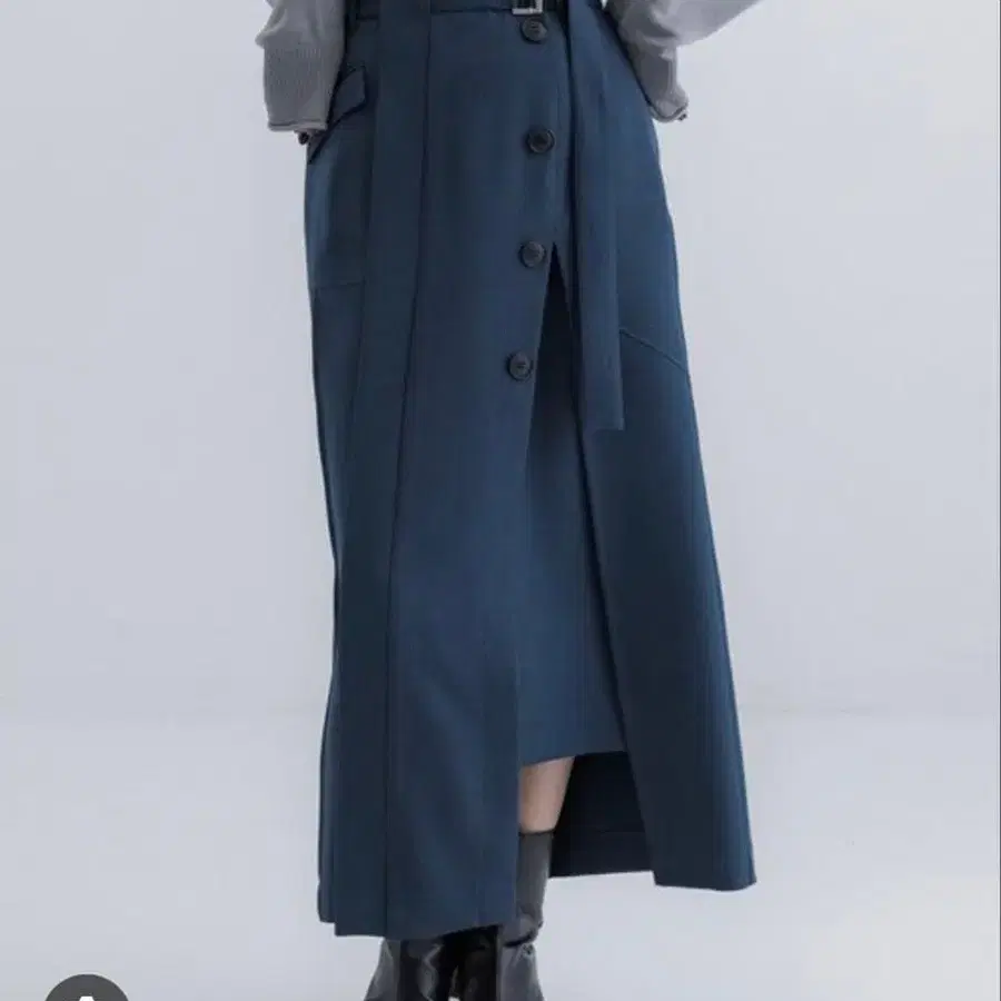 • anuans 분또 스웨이드 타이트 스커트 라이트 그레이 롱 슬릿 밴딩