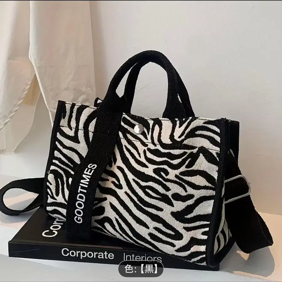 제브라 패턴 토트백 - 색상: 화이트와 블랙의 제브라 패턴 - 사이즈: 27.5cm x 18.5cm x 14.5cm - 스트랩: 조정 가능한 숄더 스트랩 - 소재: 캔버스 방문해 주셔서 감사합니다.