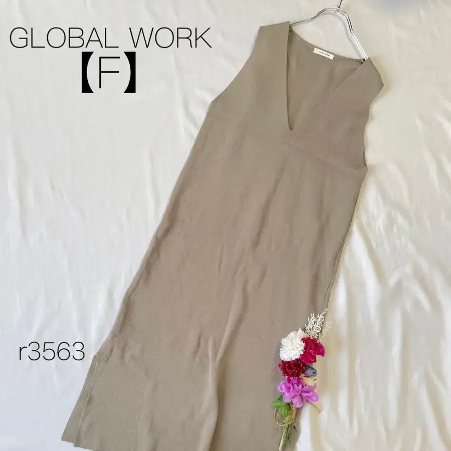 글로벌 워크 슬리브리스 V넥 원피스 베이지 슬릿 베이지