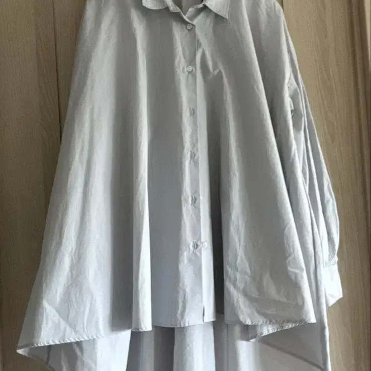 자동 번역되었어요. 원문보기오버 사이즈 라이트 그레이 셔츠, 뒷면이 긴 디자인으로 스타일리시합니다.