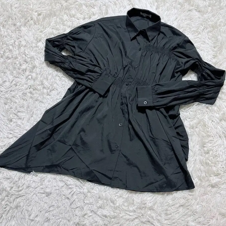 개더가 들어간 블랙 셔츠.