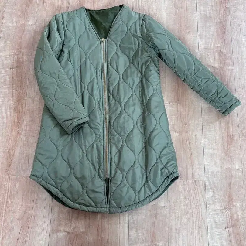 올리브 그린 퀼팅 롱 자켓, 프론트 지퍼와 V넥 디자인. - 색상: 카키 - 디자인: 퀼팅 - 스타일: 롱 자켓 - 지퍼: 프론트 지퍼 - 소매: 긴팔 - 옷깃: V넥 방문해 주셔서 감사합니다. 사이즈 - M (표시가 없지만, M 사이즈 정도라고 생각합니다) 중고품, 개인 보관이므로 이해해 주시는 분만 구매 부탁드립니다(^^)