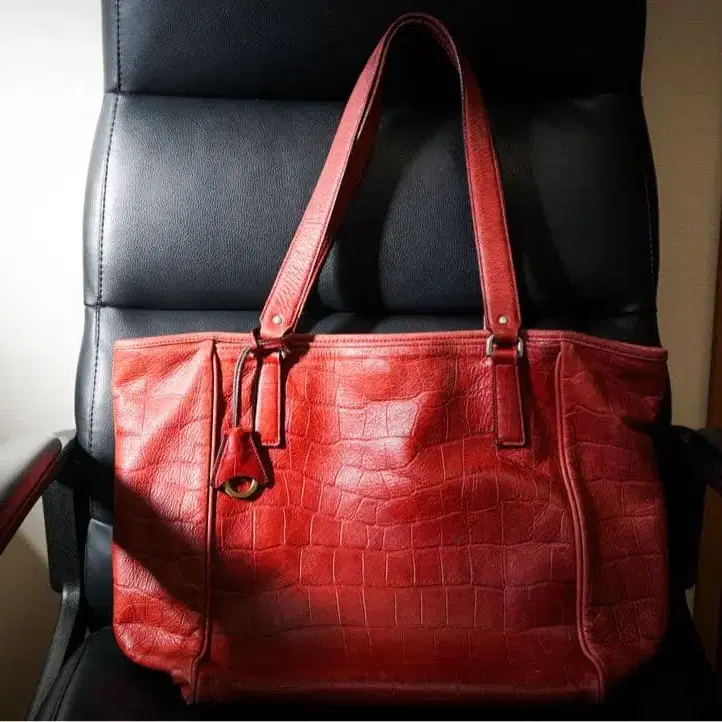 [아니아리] 가죽 토트백 빨간색 천연 가죽 크로커다일 무늬