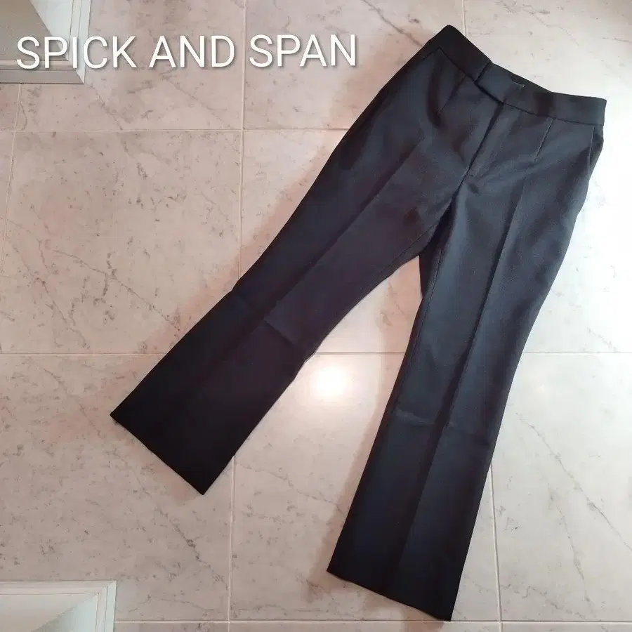 프론트 지퍼가 달린 블랙 세미 플레어 팬츠.