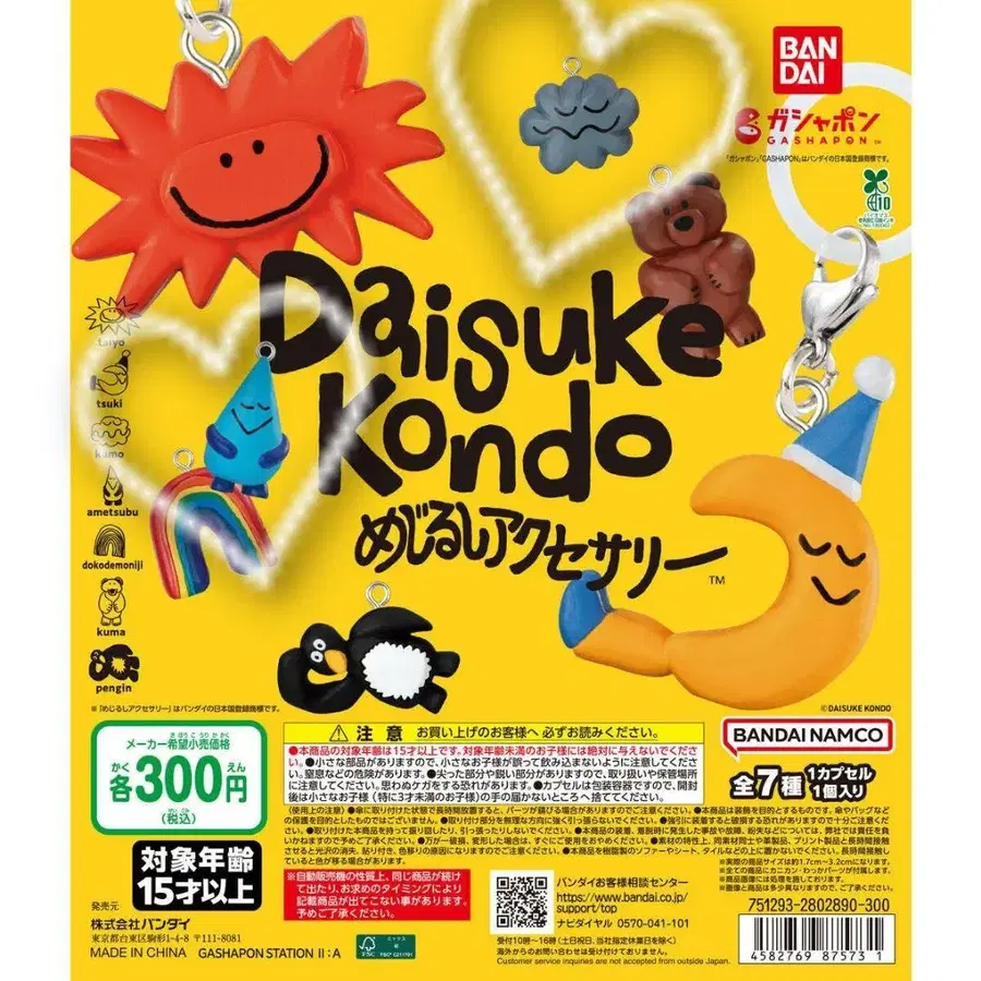 컬러풀한 디자인의 Daisuke Kondo 액세서리, 총 7종류의 캡슐 토이 세트. - 브랜드: BANDAI - 상품명: Daisuke Kondo 메지루시 액세서리 - 종류: 캡슐 토이 - 세트 내용: 총 7종류 - 상태: 미개봉 방문해 주셔서 감사합니다. KUMO x 3 AMETUBU x 1