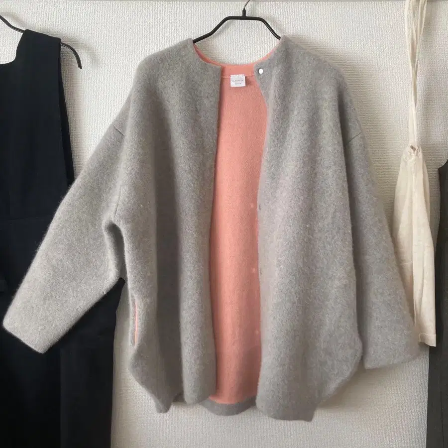CarltonAge 그레이 더블 가디건 알파카 100% 새상품급