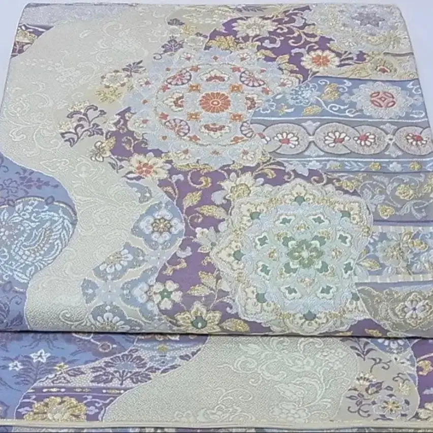 멋진 하나비시 등이 그려진 육통 무늬의 후쿠로 오비입니다.