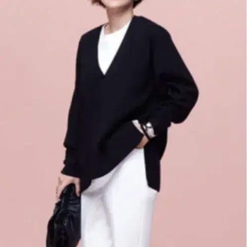 트렌디한 깊은 V넥 라인. 소매와 밑단에 흩뿌리는 스티치 미싱으로 맨투맨 스타일의 디테일을 더했습니다. V넥이 세로로 길고 샤프한 라인으로 보이도록 설정. 와이드한 소매 폭과 사이드 슬릿으로 내추럴함을 더했습니다.