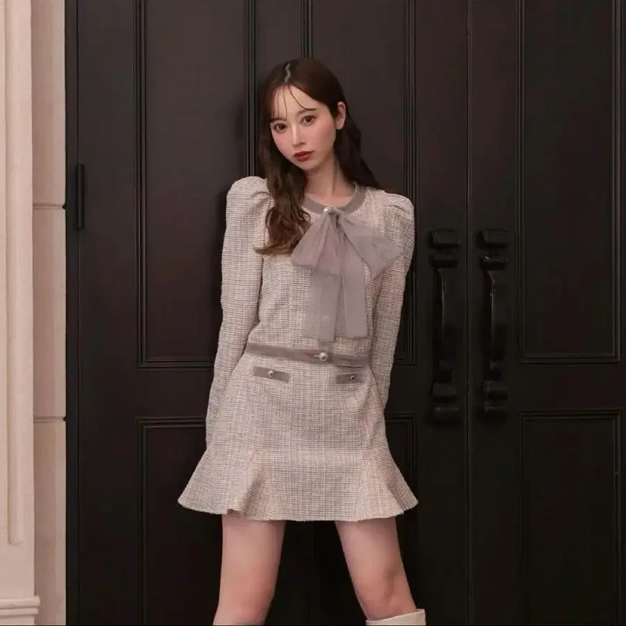 클래식 리본 트위드 가디건 클래식 트위드 플레어 미니 스커트 매장 한정판 핑크입니다. 몇 번 착용했지만 얼룩 등은 보이지 않습니다. 어디까지나 개인 관리이므로 신경 쓰이는 분은 구매를 자제해주세요!!! 사이즈 - FREE SIZE