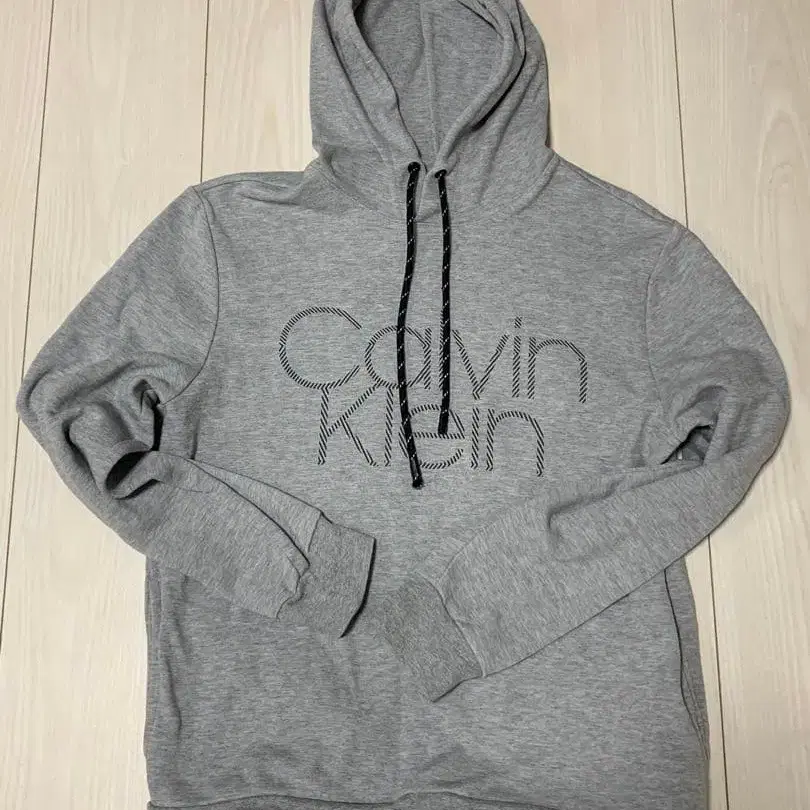 그레이 Calvin Klein 후드 부착 얇은 소재 후드티