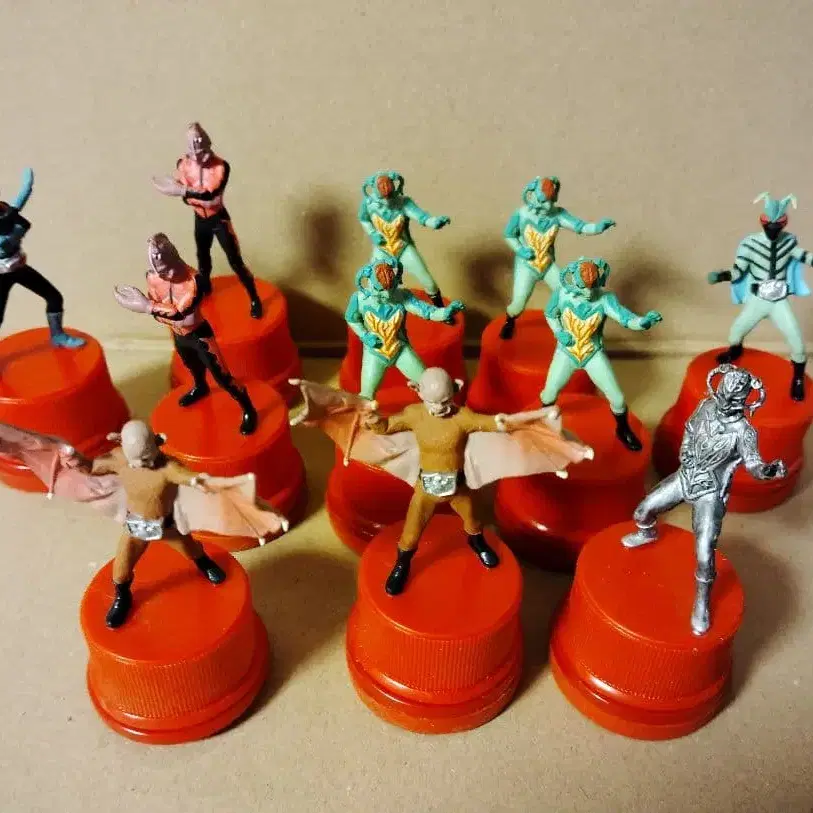 다양한 가면라이더와 적 캐릭터의 병뚜껑 피규어 세트. - 피규어 종류: 특촬물 피규어 - 색상: 다색 - 수량: 11개 - 캐릭터: 가면라이더 - 캐릭터: 적 캐릭터 박쥐 남자의 스탬프가 한쪽 없습니다. 각 스탬프 부분에 얼룩이 있습니다. 방문해 주셔서 감사합니다.