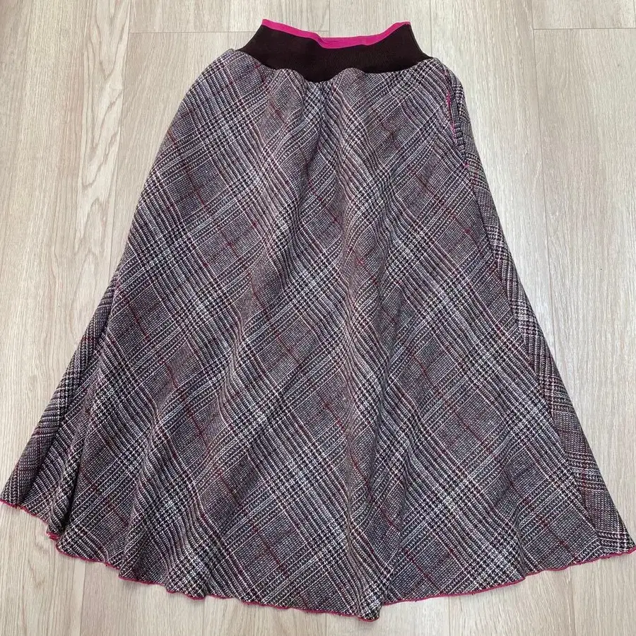 자동 번역되었어요. 원문보기Q ♡ 브라운 계열 체크 무늬 롱 플레어 스커트