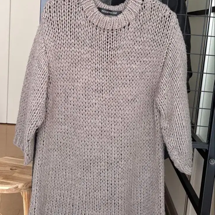 베이지색 긴팔 니트, 부드러운 소재감이 특징입니다.