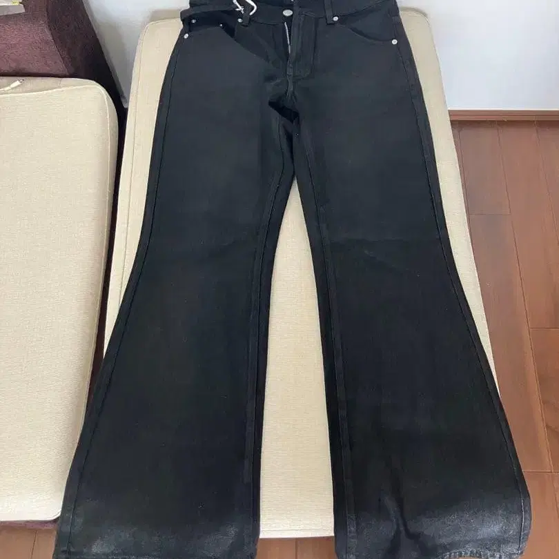 블랙 부츠컷 데님, 백 포켓 부착, 벨트 루프 있음. - 색상: 블랙 - 스타일: 부츠컷 - 포켓: 백 포켓 있음 - 허리: 벨트 루프 부착 2회 정도 착용했습니다. 방문해 주셔서 감사합니다.