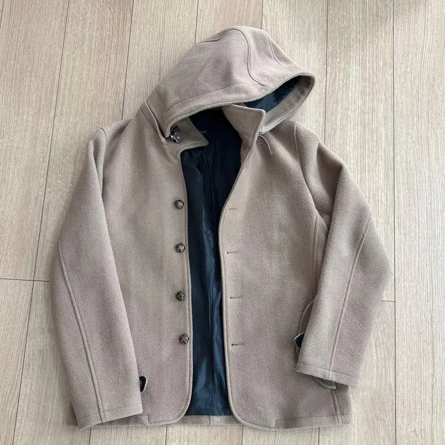 후드 부착 베이지 울 코트, 전면 단추식과 포켓 부착. - 색상: 베이지 - 후드: 후드 부착 (탈부착 가능) - 단추: 전면 단추식 - 포켓: 전면 포켓 부착 - 소재: 울 느낌의 원단 방문해 주셔서 감사합니다. 사이즈 - M
