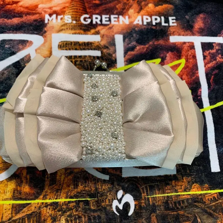 리본과 펄 장식이 특징인 베이지 파티 백. - 색상: 베이지 - 디자인: 리본 포함, 펄 장식 - 브랜드: JUSGLITTY 방문해 주셔서 감사합니다.
