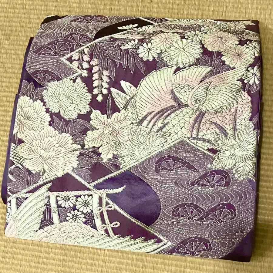 어머니께서 소중히 보관하시던 상품입니다. 눈에 띄는 흠집 등은 없으나 오래된 상품입니다. 노후화에 이해하신 후 구매 부탁드립니다. 보라색 꽃무늬와 학 자수가 놓인 후쿠로 오비. 31 x 424cm - 색상: 보라색 - 디자인: 꽃무늬와 학 자수 - 소재: 실크 또는 합성섬유 - 특징: 섬세한 자수 디테일 방문해 주셔서 감사합니다.