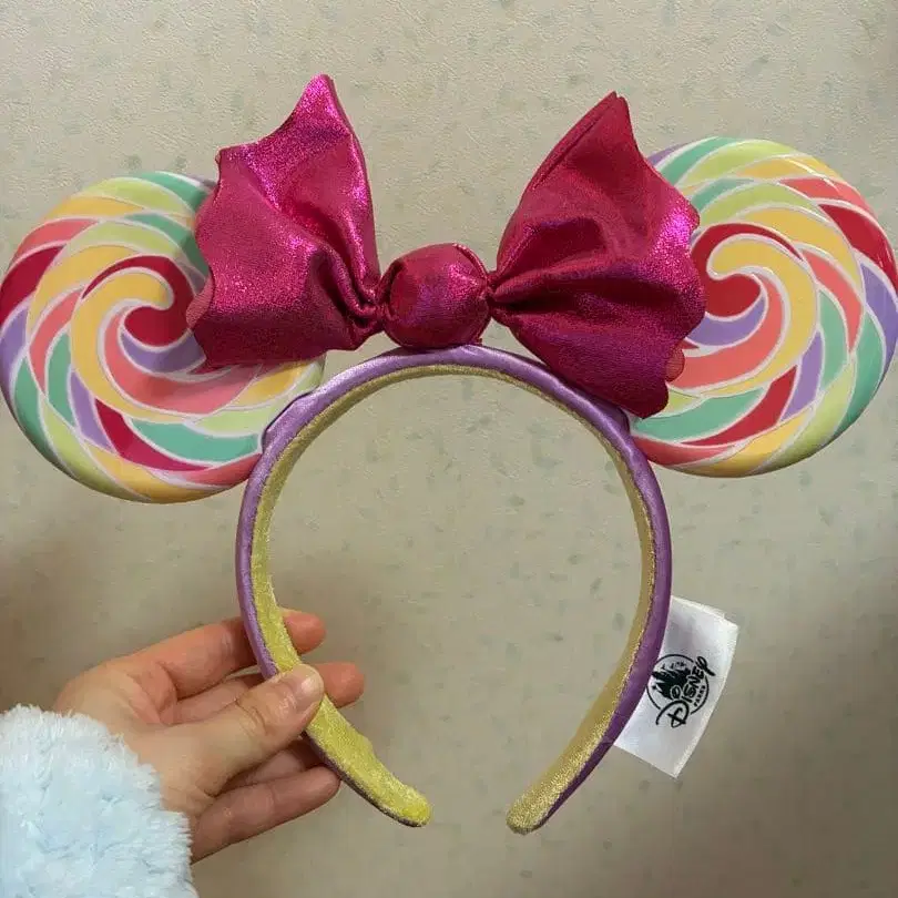 컬러풀한 캔디 귀가 특징입니다. 2019년 캘리포니아 디즈니랜드에서 구매했으며, 파크 내에서 하루 종일 착용했습니다. - 디자인: 캔디 귀와 리본 - 소재: 귀는 플라스틱으로 단단합니다. 방문해 주셔서 감사합니다.