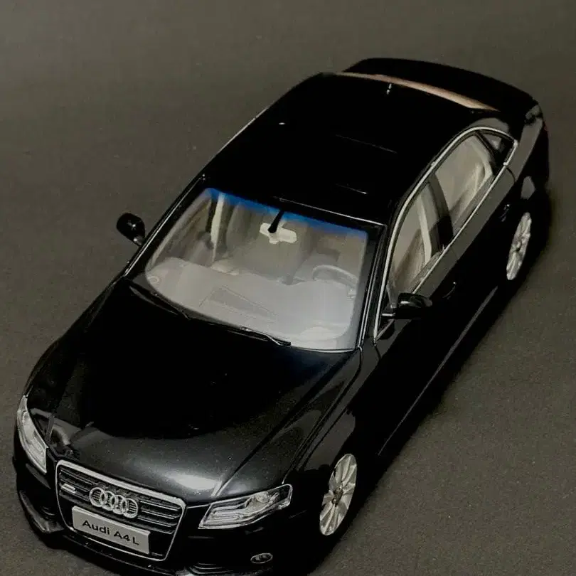 정교한 디자인의 Audi A4 미니카, 블랙 컬러에 1/18 스케일.