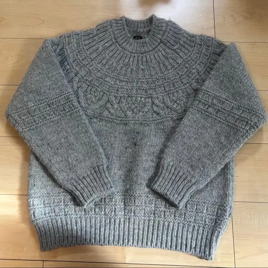 바토너의 스프레드 아란 크루넥 스웨터입니다. 사이즈는 1 모델명 SPREAD ALAN CREW NECK 색상은 그레이 울 100% 기장 62cm 가슴 너비 53cm 화장 71cm 사이즈 - 1 가격 인하 불가