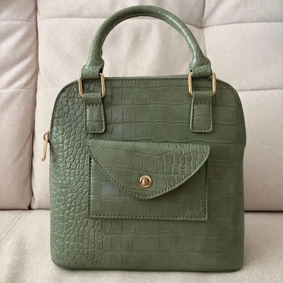크로커다일 패턴의 그린 숄더백.
