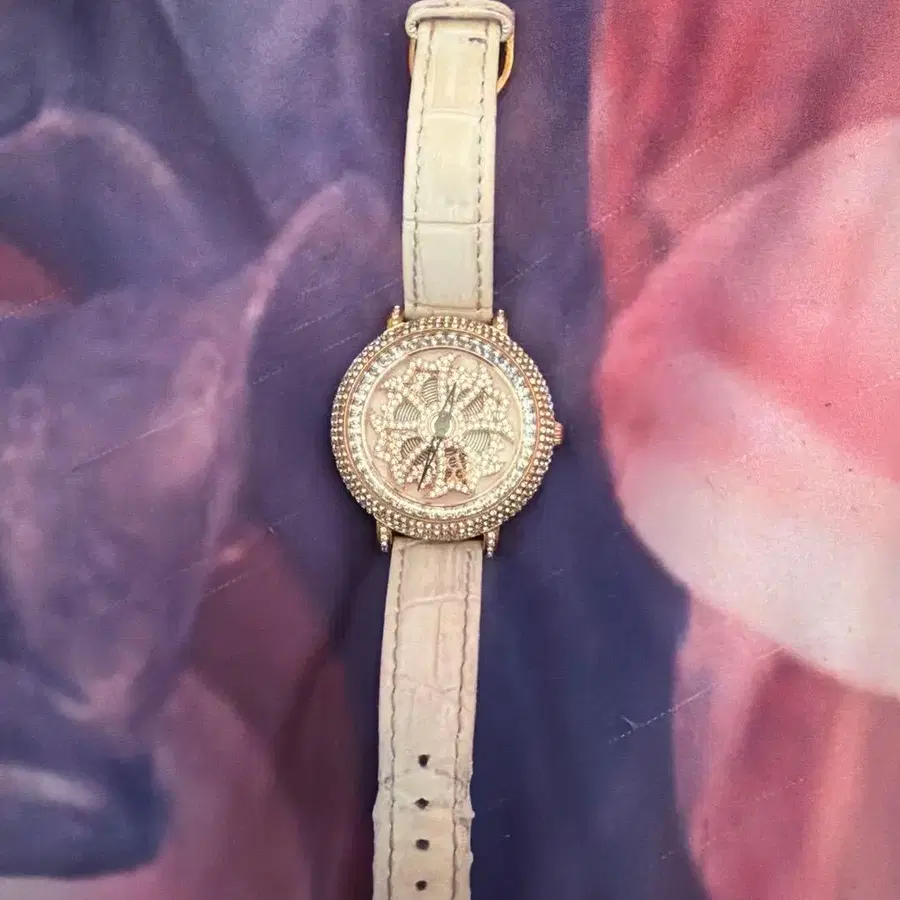 꽃무늬 다이얼의 연보라 손목시계