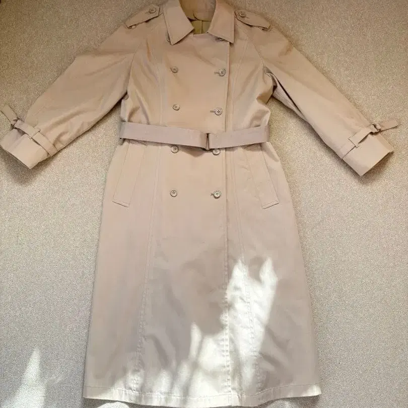 베이지 트렌치코트, 블랙 버튼 포함. 가슴 너비: 45 기장: 120 영국적인 분위기의 트렌치코트로 비즈니스부터 프라이빗까지 폭넓게 활용 가능합니다! 개인 보관이므로, 이해해 주시는 분께 부탁드립니다.