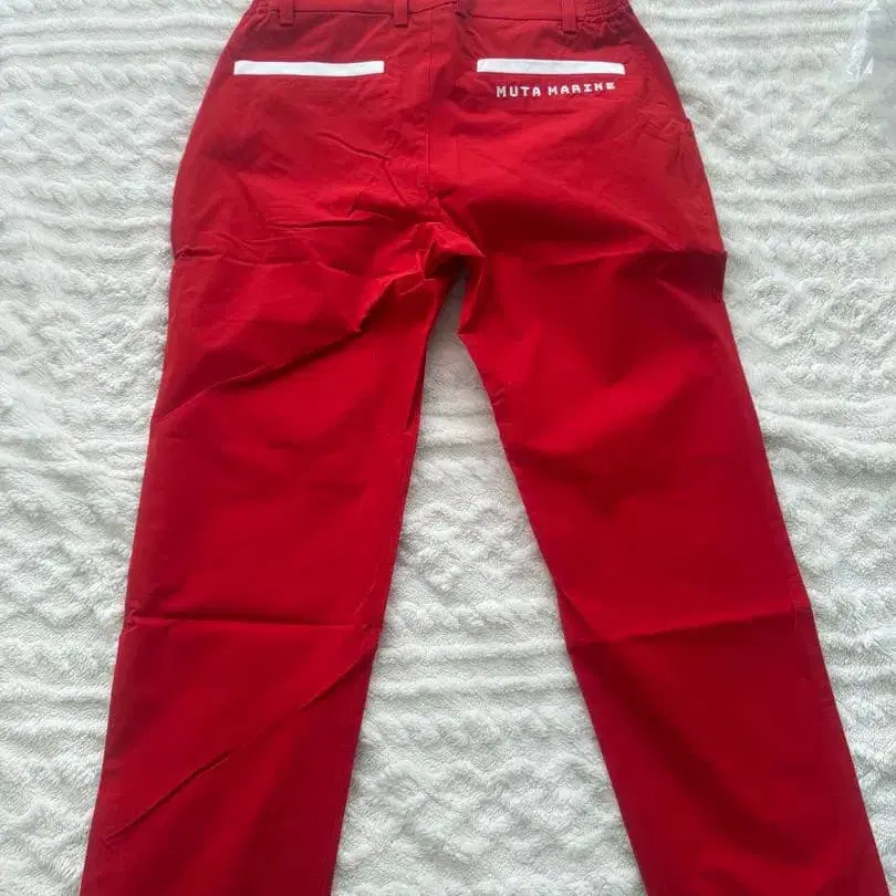레드 슬림핏 팬츠, 자수 로고와 백 포켓 부착. - 브랜드: MUTA MARINE - 색상: 레드 - 디자인: 자수 로고 부착 - 스타일: 슬림핏 - 포켓: 백 포켓 부착 방문해 주셔서 감사합니다. 편하게 문의해 주세요.