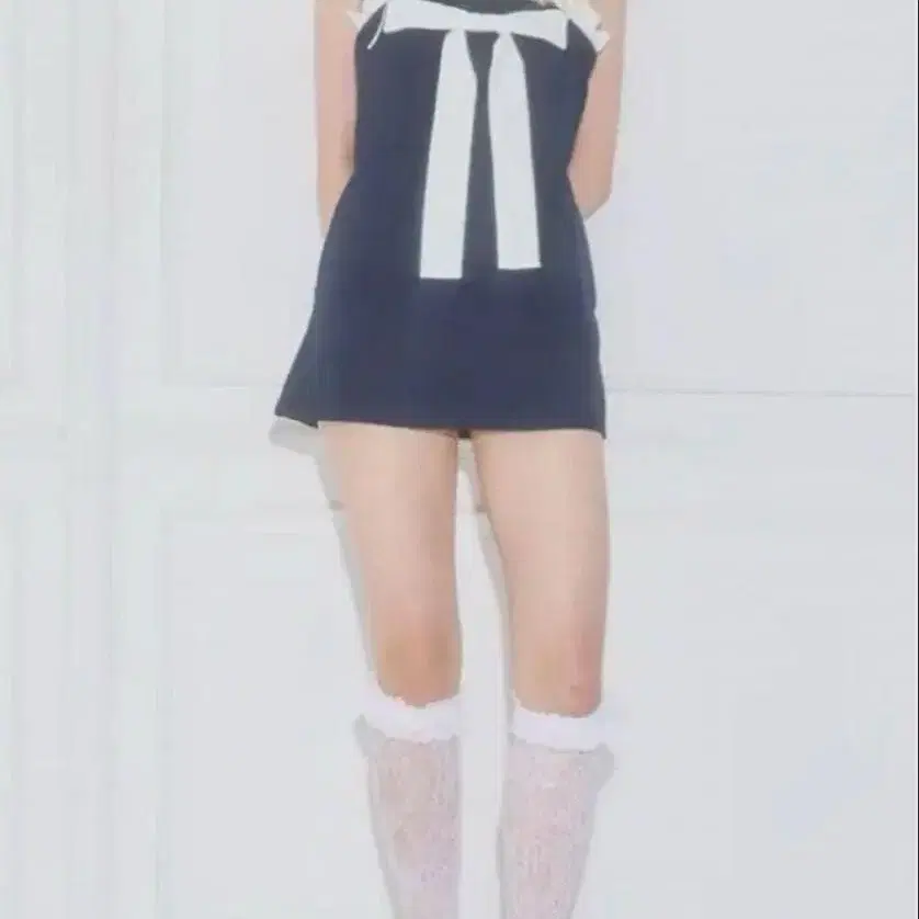 릴릴리 lilLilly 바이컬러 리본 미니 드레스 네이비