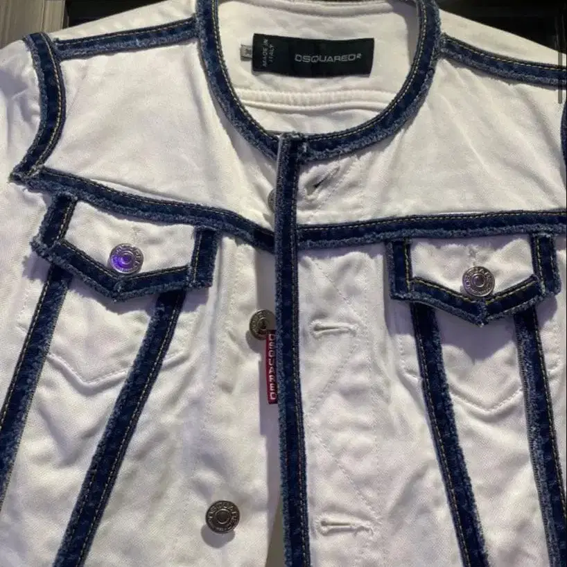 화이트 색상에 데님 스타일 트리밍이 돋보이는, 디스퀘어드 특유의 세련된 디자인.