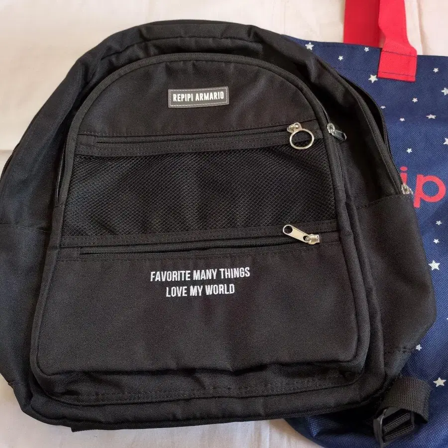 메쉬 포켓이 달린 블랙 백팩. - 브랜드: REPIPI ARMARIO - 색상: 블랙 - 디자인: 메쉬 포켓 부착 .size 약 가로 30 ✕ 세로 40 : 레피피 알마리오 쇼핑백 쇼핑백 에코백 size 약 45 ✕ 50 방문해 주셔서 감사합니다.