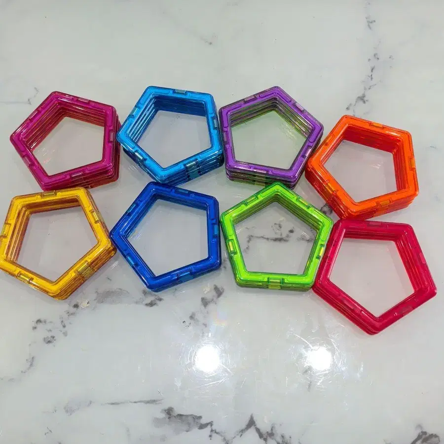 다채로운 모양과 색상의 블록 세트, 창의력을 자극하는 완구. - 색상: 오렌지, 핑크, 그린, 파랑, 보라색, 옐로우 컬러, 빨간색 - 모양: 육각형, 정사각형, 삼각형 - 소재: 플라스틱 - 수량: 8개 세트 - 부속품: 바퀴 달린 기판 방문해 주셔서 감사합니다.